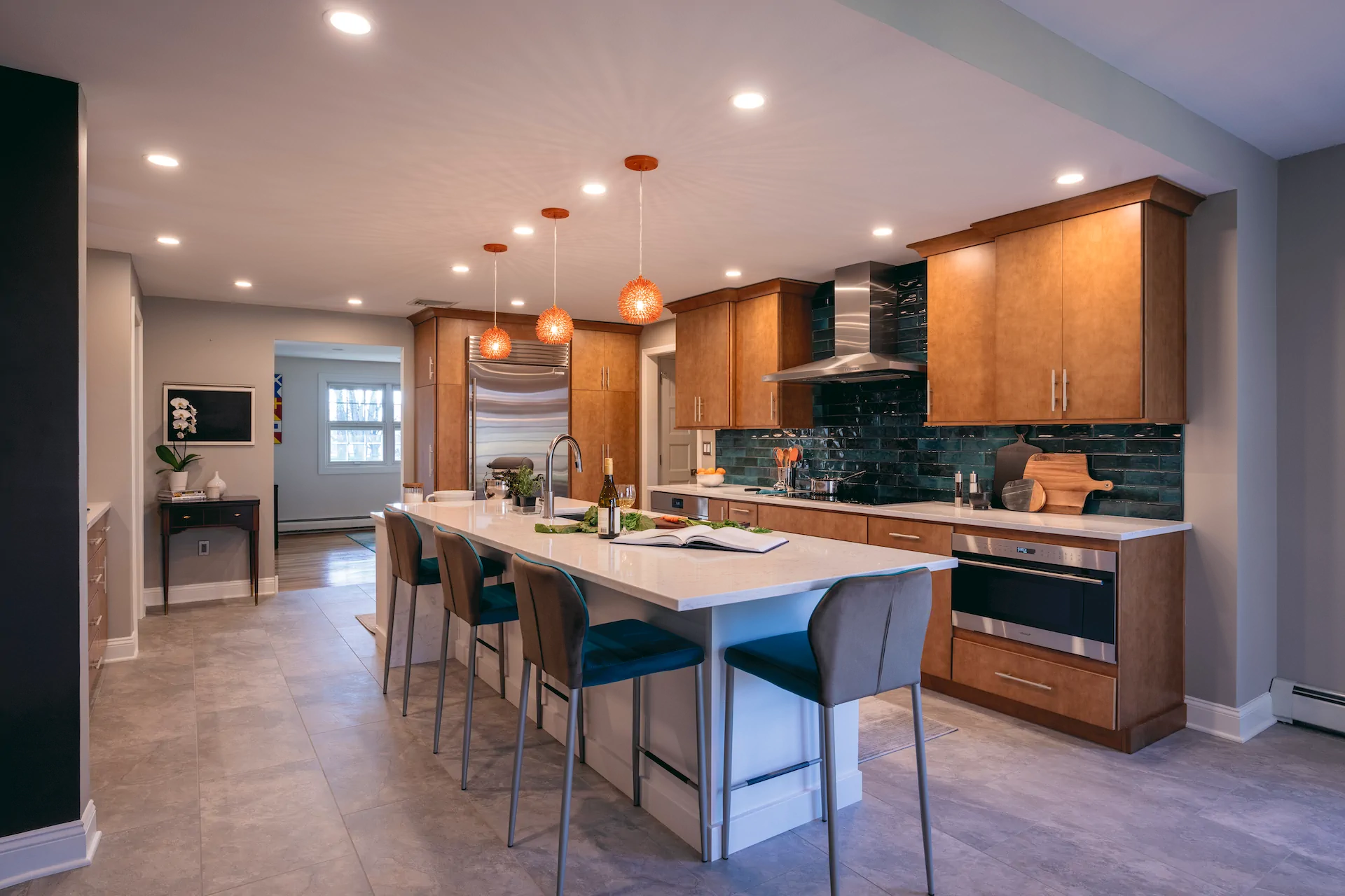 While their existing kitchen served its purpose, this Doylestown couple longed for a space that matched their personality and cooking style. On top of their wish list was moving away from the existing traditional style to a bolder look that reflected their creative and fun nature. They also wanted a new layout that accommodated how they moved around the kitchen. They called Custom Craft to help them design a customized kitchen that felt more natural in both form and function.