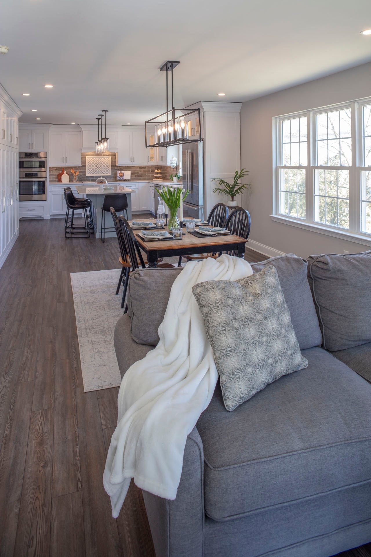 The existing windows’ placement didn’t quite fit with the new open floor plan, so all new windows were installed throughout the first floor. This space is now filled with natural light, and the homeowners can enjoy a relaxing view into their backyard. The area is brighter, has a much better flow, and feels more cohesive, especially with the new flooring and matching updated stairway.
