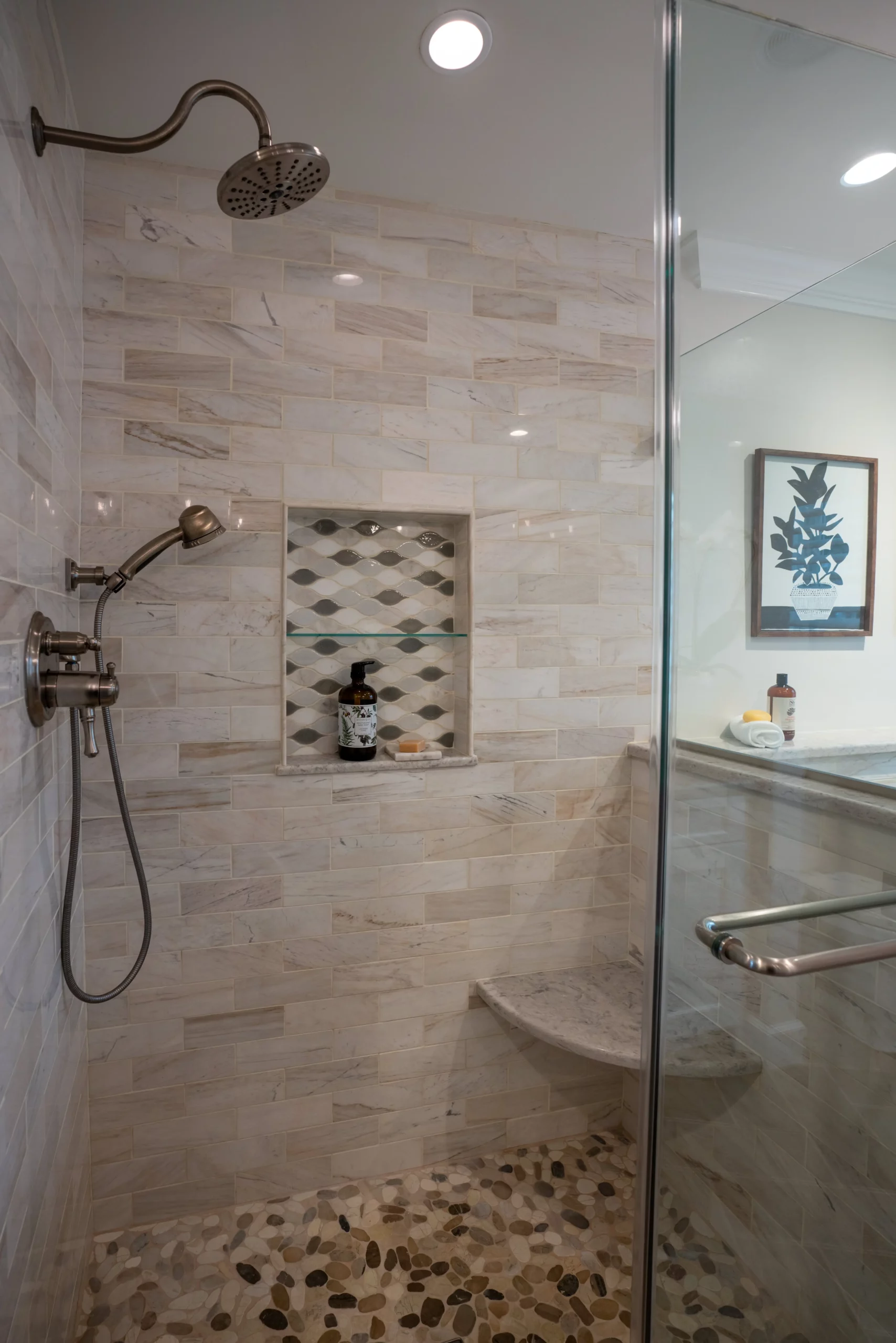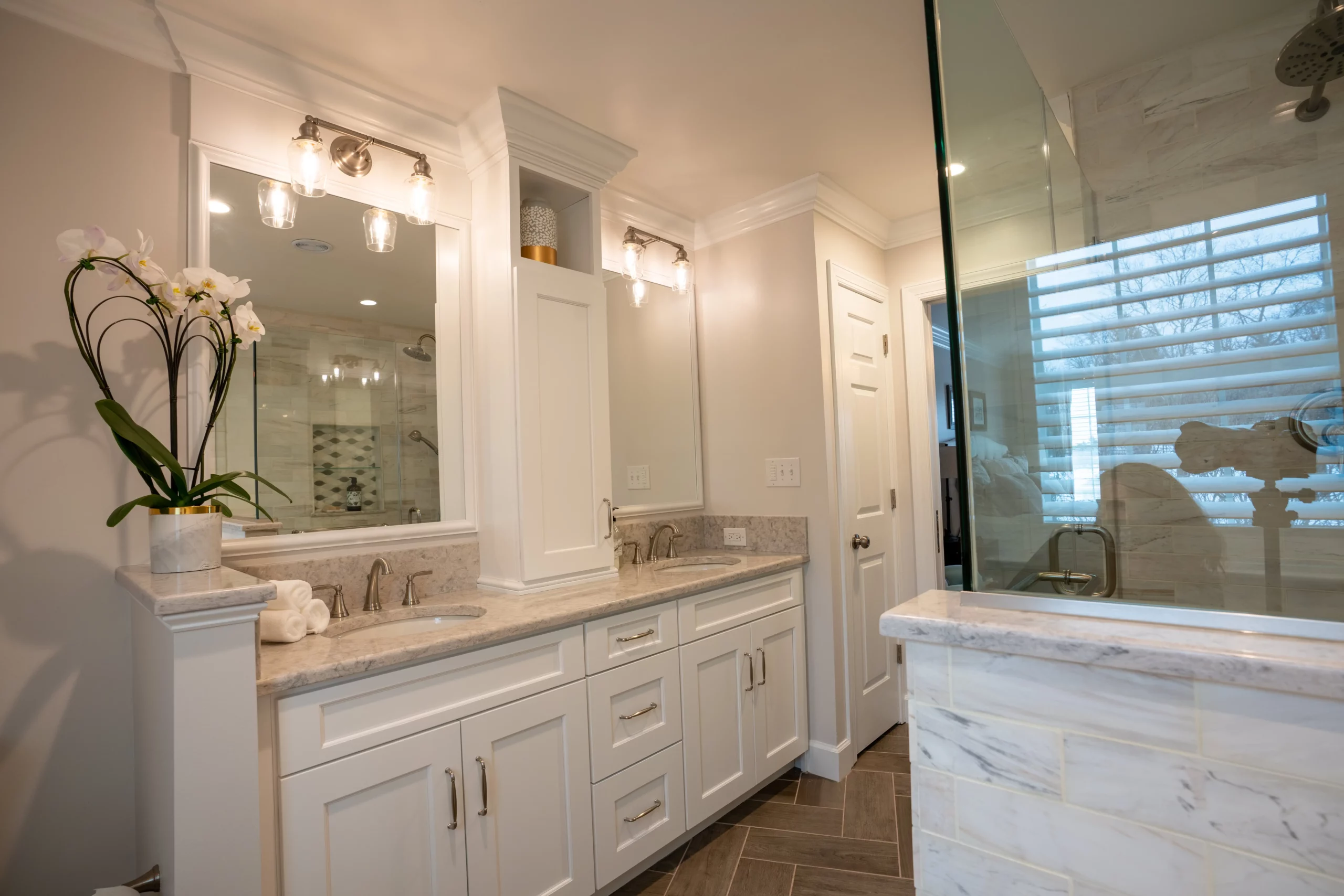 These Souderton homeowners contacted us to update and refresh their dark and dated master bathroom with a new look and layout that better met their needs. The goals in this project were to: